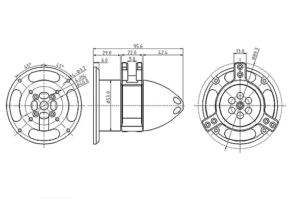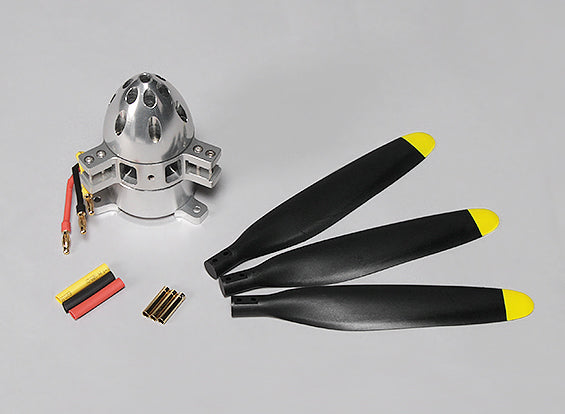 Shaft-free 450KV brushless outrunner motor w/propellers. This high power shaftless motor features excellent cooling and huge amounts of thrust. The center part of the motor is used as a 3-blade propeller hub. Designed for large electric fixed wing models. Propellers are included.