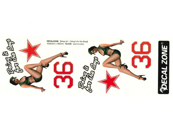 Looking to add a little individuality to your current 0.40-0.60 size warbird project? These high quality self adhesive nose art decals may just fit the bill! The art work is very sharp, the colors are vibrant and they look great!