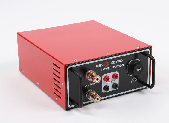 The Revolectrix Power Station features a 24VDC 55A main output plus 2 x 12VDC 15A outputs boasting 1320W total output. Perfect power source for the Cellpro PowerLab 6, PowerLab 8, iCharger Duo series and other high power battery chargers capable of 24VDC input!