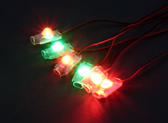 These LED lights are extremely bright, they stand out really well in any light conditions. Included in the set are 4 red and 2 green lights plus a low voltage warning buzzer. The lights are pre-wired and plugged onto 60cm wires so they should suit a wide range of models.