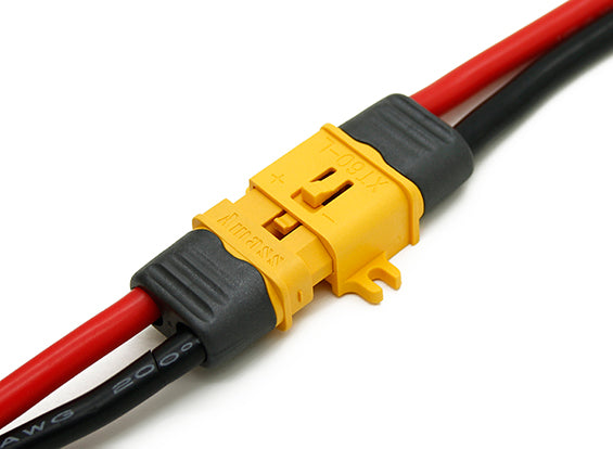 The popular XT60 plug and socket has taken a leap forward, it has been improved even further with this easy to use version which has a safety locking feature. Also for added protection and insulation they are supplied with a clip on cap which removes the need for heatshrink tubing, all very neat.
