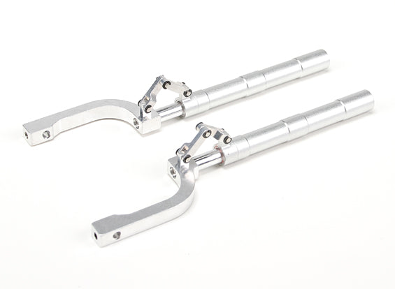 Very well made and finished lightweight alloy oleo struts with offset and trailing link, they are sprung loaded and will accept a wheel of up to 89mm (3.5ins) diameter.Perfect for your scale Mitsubishi Zero project.