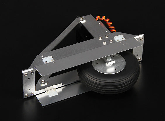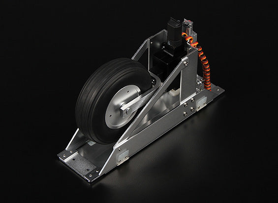 The servoless system mechanically locks in both the retracted and extended positions. The wheel is 100mm in diameter, featuring a solid alloy hub with a rubber tire. Designed to retract completely inside the fuselage, this retract also includes pre-installed gear doors, operated by a pre-installed motor and a servo sequencer - this makes it all plug and play!