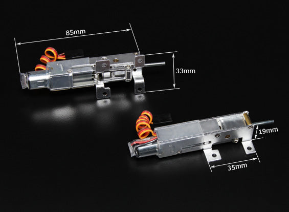 Turnigy Basic metal Series electronic retract systems feature an all metal construction and advanced micro controllers with an integrated circuit to automatically stop the retract and recover from jamming problems. The integrated circuit also protects against over-current draw.