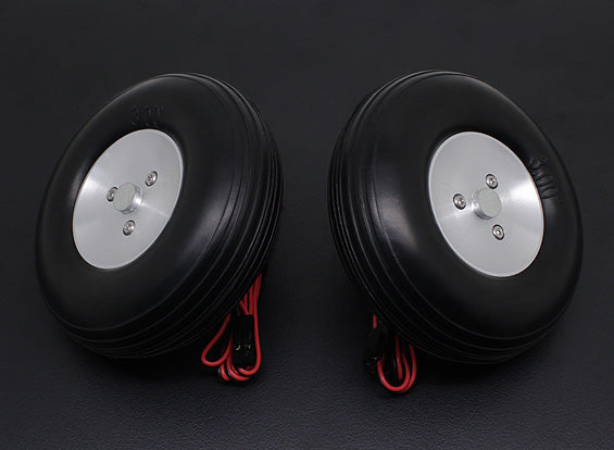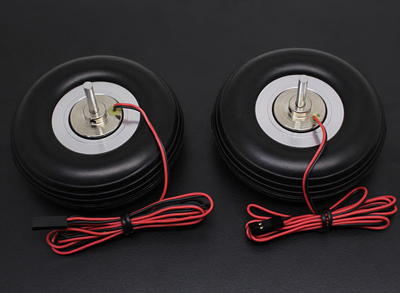 Turnigy Electric Magnetic Brake Wheels (no controller) 80mm (3.0") Wheel (2pc) - The Turnigy Electric Magnetic Braking System offers a simple plug & play unit that takes minutes to fit and set up, the braking system is proportional and is controlled via an Auxilliary Channel operated via a slider/rotary knob on your TX. The unit will operate off a wide range of input voltages ranging from 12v~40v, making them ideal for EDF applications. Each wheel unit is pre-assembled and mounted on a 4mm axle, the 800mm lead is also pre-attached meaning you simply plug into the control unit (required) and you are good to go!