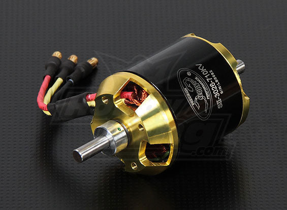 Scorpion Competition Series Brushless Motors are built from the best materials available, and are designed to provide both quality and performance at an affordable price. The new SII series motors are an updated and improved version of the popular 30mm motors that have been so successful. Scorpion starts with high quality aluminum alloy parts that are produced on the latest CNC milling machines. These parts are then gold Electro-Plated to provide a beautiful, long-lasting finish. The stators are made with 0.2mm laminations to give maximum efficiency, and minimum Eddy current losses. The stators are epoxy coated to prevent shorts, and are wound with wire that is rated at 180 degrees C (356 F). The magnets used in Scorpion Motors are rated for operation at 200 degrees C (392 F), making a motor that is virtually impossible to burn up in normal use.
