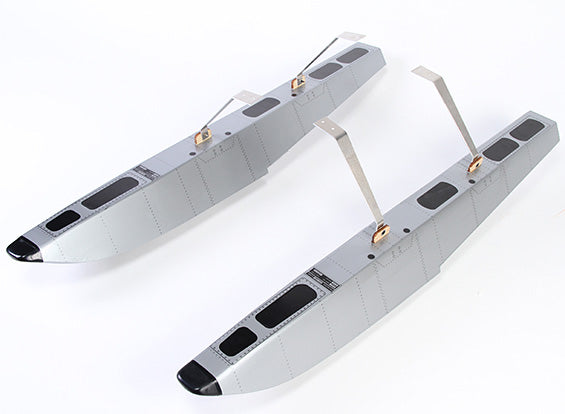 Hobby King to the rescue with a new set of floats perfect for your 40~60 size airplane. These all balsa/plywood floats come pre-built and covered with all the hardware needed for installation. No need to spend many hours laboring over the build, making sure they're waterproof, and finally installing them. We've cut out the first two, and most laborious steps.